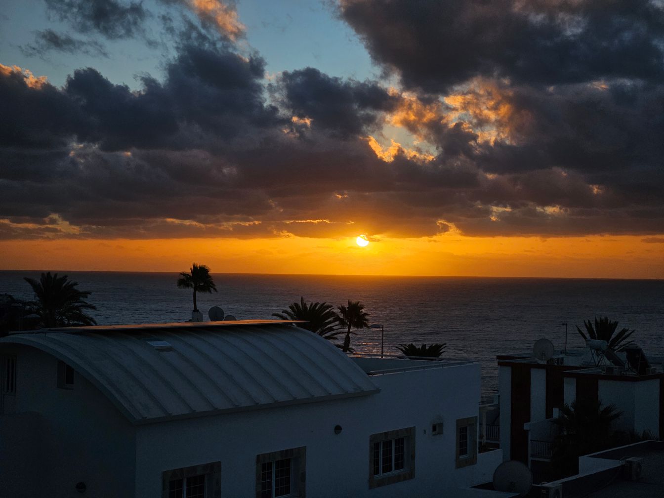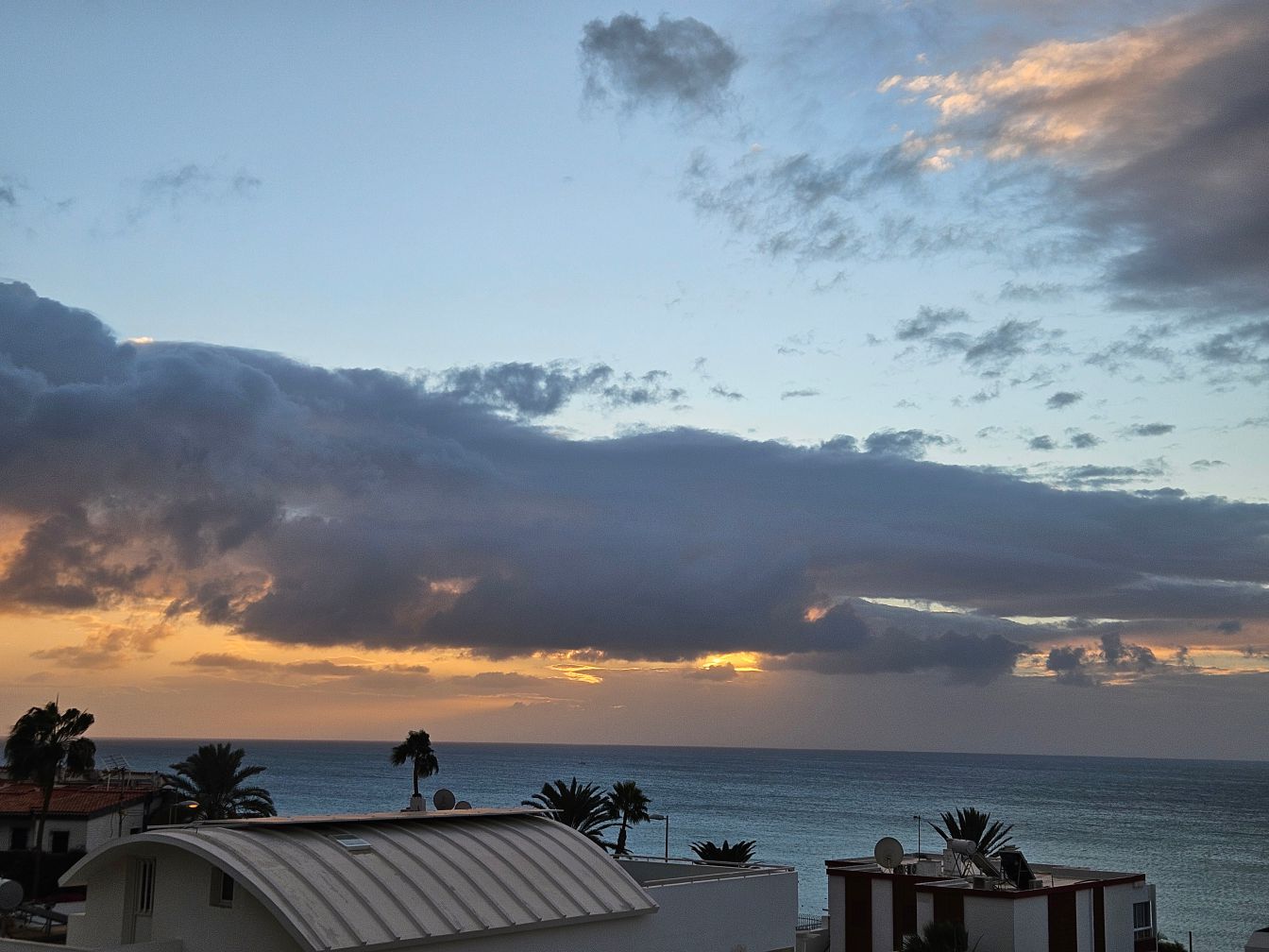 Gefilmt habe ich den Sonnenaufgang dennoch. Um das Ganze ein bisschen zu straffen, läuft die Videoaufnahme in doppelter Geschwindigkeit. Und das Meeresrauschen ist eine Endlosschleife aus einem Film vom Strand, in Wirklichkeit hören wir vom Balkon aus lediglich die Feiernden in den umliegenden Bars beziehungsweise zu diesem Zeitpunkt gegen 7:45 Uhr ein bisschen Vogelgezwitscher. Das Intro ist ebenfalls irgendwie zusammengezimmert aus den Sachen, die ich auf dem Laptop habe. Auf sowas war ich einfach nicht vorbereitet.