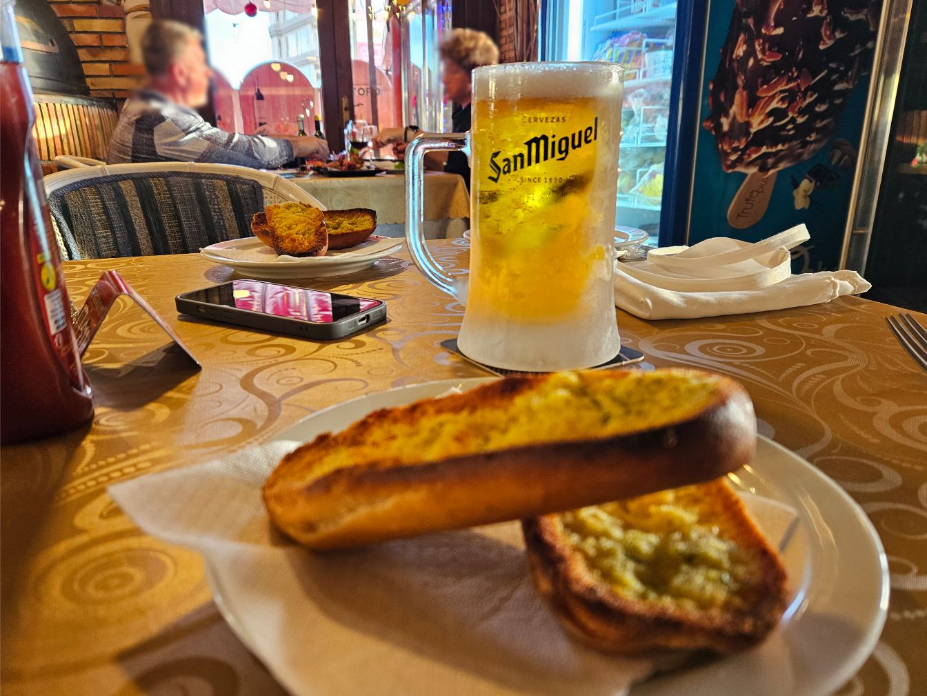 Der Clou daran sind die gekühlten Gläser, die sogar ein San Miguel genießbar machen.