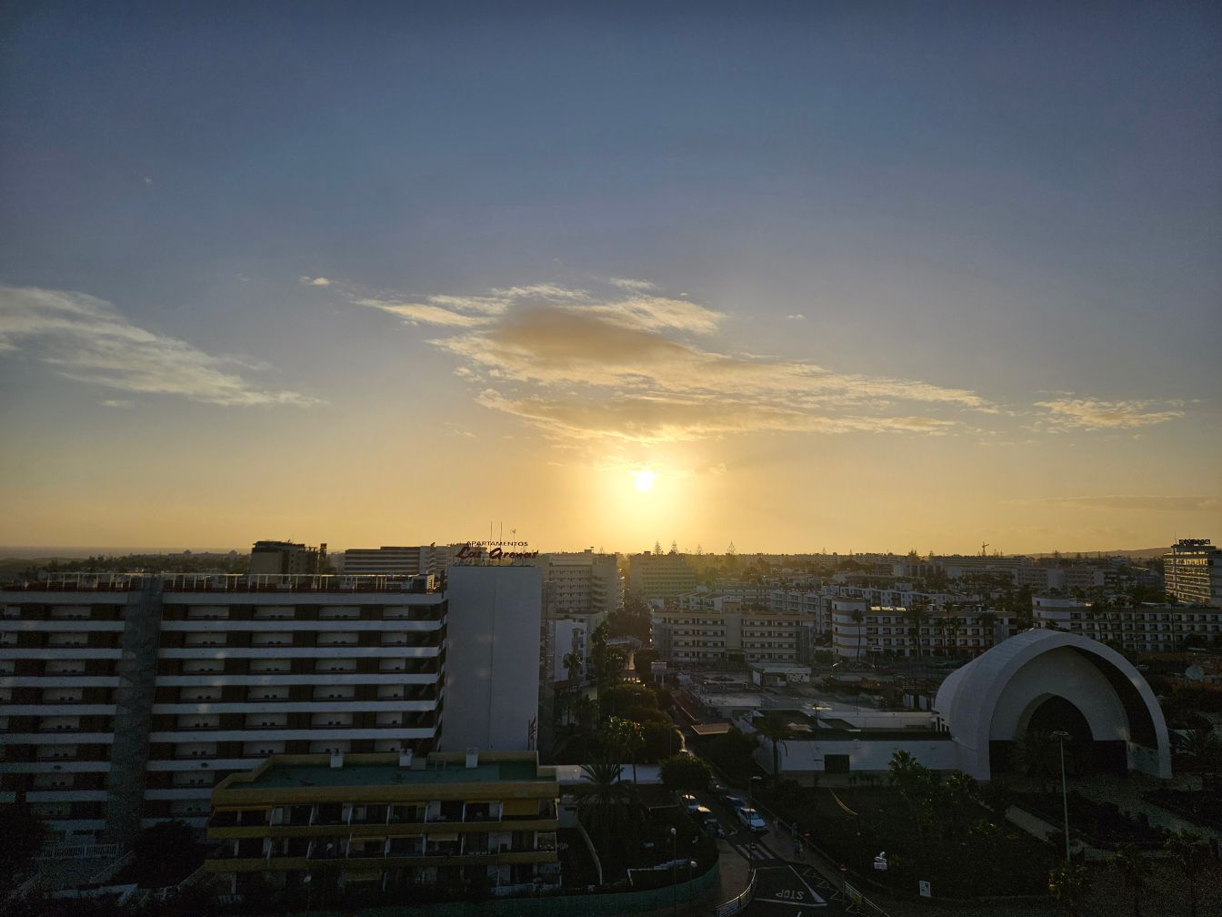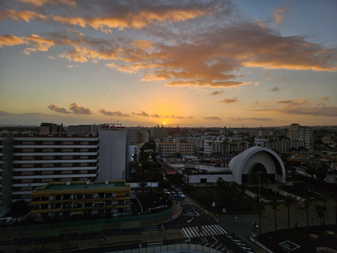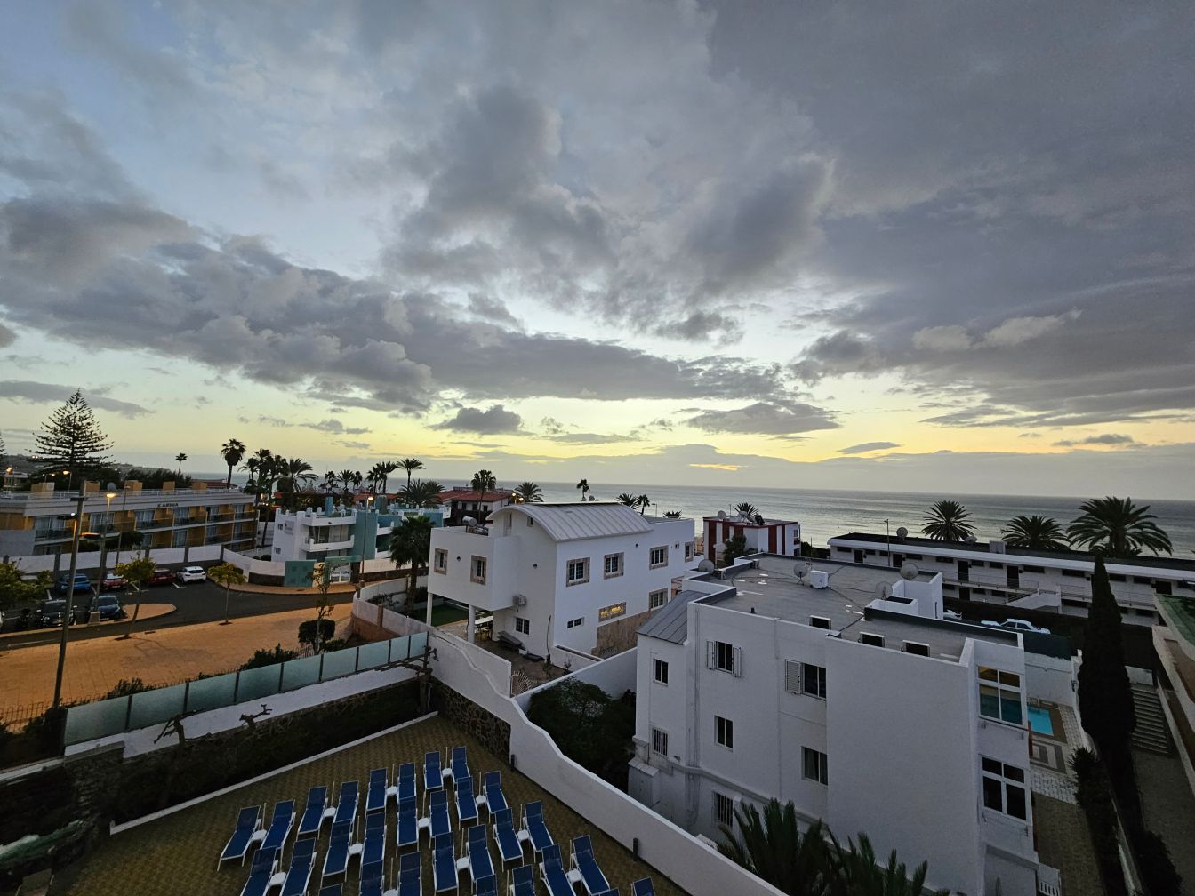 Gefilmt habe ich den Sonnenaufgang dennoch. Um das Ganze ein bisschen zu straffen, läuft die Videoaufnahme in doppelter Geschwindigkeit. Und das Meeresrauschen ist eine Endlosschleife aus einem Film vom Strand, in Wirklichkeit hören wir vom Balkon aus lediglich die Feiernden in den umliegenden Bars beziehungsweise zu diesem Zeitpunkt gegen 7:45 Uhr ein bisschen Vogelgezwitscher. Das Intro ist ebenfalls irgendwie zusammengezimmert aus den Sachen, die ich auf dem Laptop habe. Auf sowas war ich einfach nicht vorbereitet.