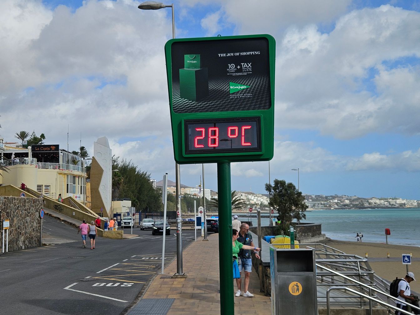 Also wieder zurück ins Hotel, vorbei an einer Temperaturanzeige, die die ganze Dramatik aufzeigte.