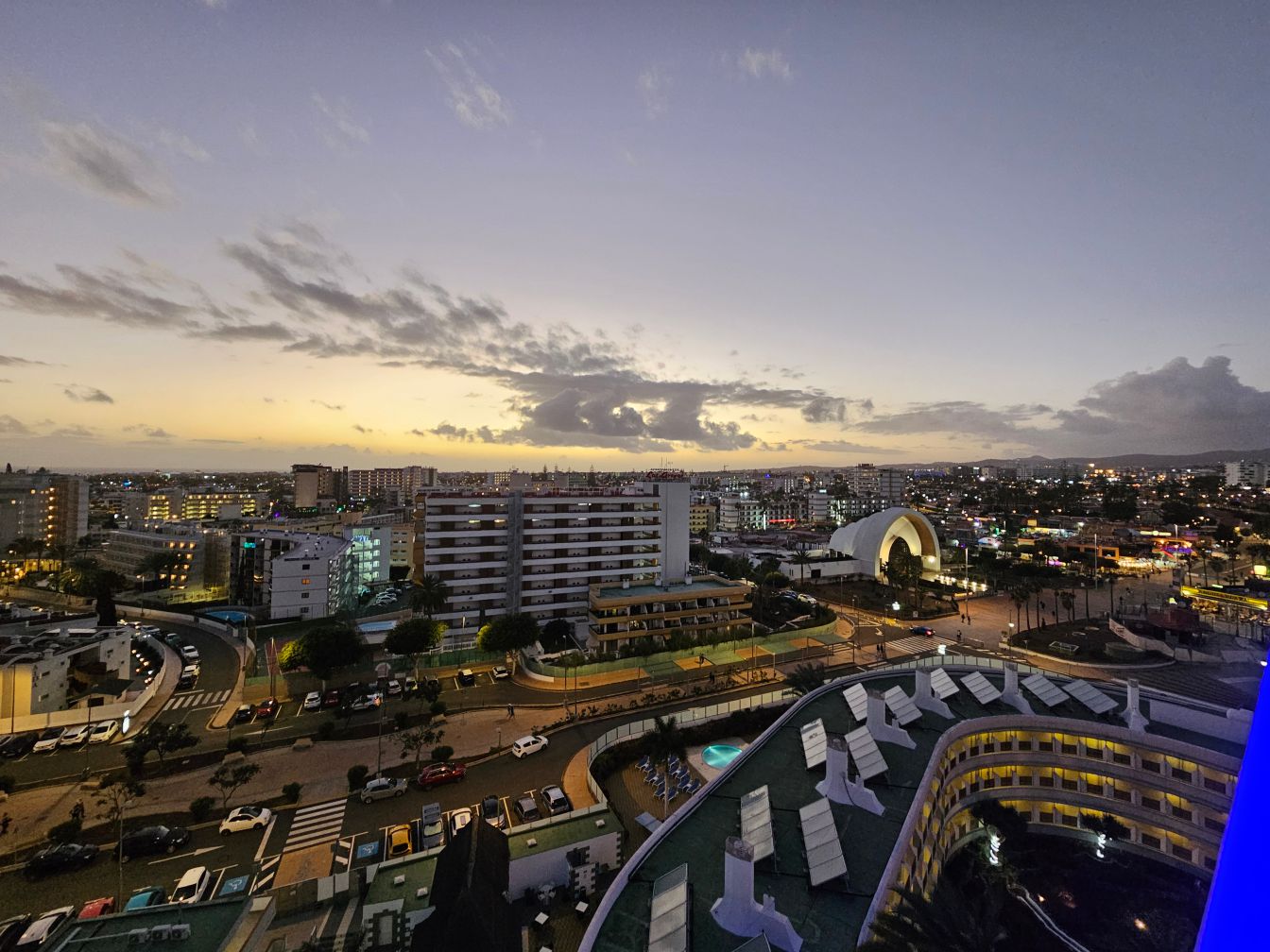 Als wir dann endlich im Terminal ankamen, drehten die Koffer überraschenderweise bereits die wohl nicht erste Runde auf dem Kofferband und wir konnten sofort weiter. gunn hatte vorab ein Taxi bestellt, also hätte eigentlich nicht viel schiefgehen können. Tat es aber, denn durch ein paar Unfälle auf den Straßen zum Flughafen brach das pure Chaos aus. Die Schlange am Taxistand ging gefühlt bis nach Las Palmas, womit wir eigentlich nichts zu tun hatten. Aber auch unser vorbestelltes Taxi hatte seine liebe Not, den Flughafen zu erreichen. Ein paar sehr freundliche Mitarbeiter am Taxistand halfen uns aber weiter, führten uns an der verblüfften und teilweise auch durchaus ungehaltenen Schlange ("Stellen Sie sich gefälligst hinten an!") vorbei und nach zwei Zigaretten saßen wir dann im Auto, das uns überraschend schnell zum Hotel brachte.